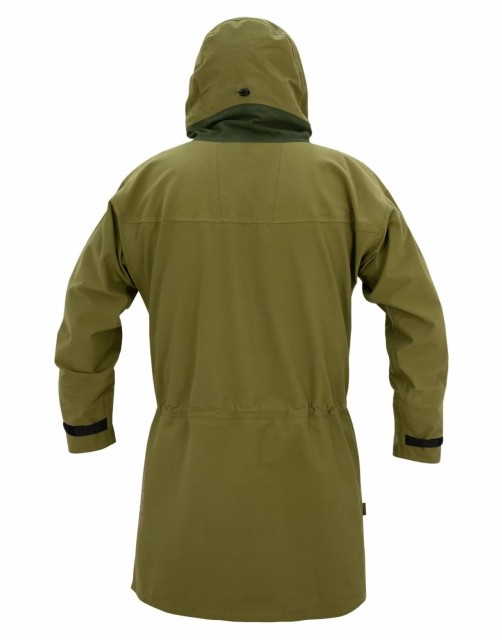 Anorakken er laget av Swazi sitt eget materiale som er ekstremt stille, noe som gjør den spesielt egnet for jakt. Membranen i anorakken gjør den vind- og vanntett samtidig som den puster.