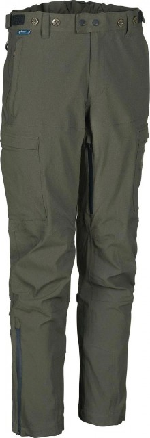 Stretchmaterialet gir full bevegelsesfrihet, mens forsterkning på utsatte områder gir høy slitestyrke. Justerbare benslutter, flere praktiske lommer og ventilasjonslynlåser gjør buksen meget fleksibel.