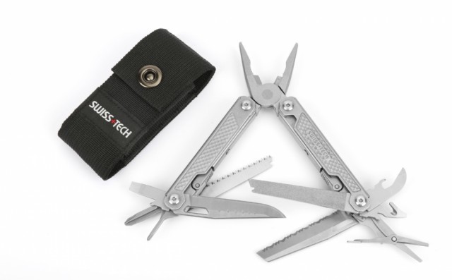 Dette multiverktøyet fra Swisstech er utrolig robust og praktisk i mange situasjoner takket være sine 17 funksjoner.Multiverktøyets kropp er lagt av 3CR13, som er et svært slitesterkt materiale. Alt av tilbehøret er steinvasket. Dette gir utrolig holdbarhet og reflekterer ikke lys, noe som er perfekt for tunge og tøffe miljøer. Leveres med oppbevaringspose.