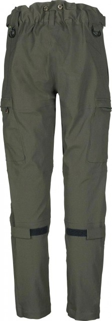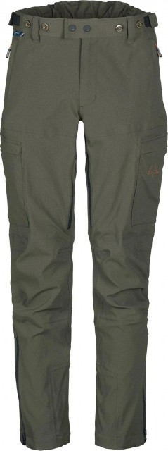 Stretchmaterialet gir full bevegelsesfrihet, mens forsterkning på utsatte områder gir høy slitestyrke. Justerbare benslutter, flere praktiske lommer og ventilasjonslynlåser gjør buksen meget fleksibel.
